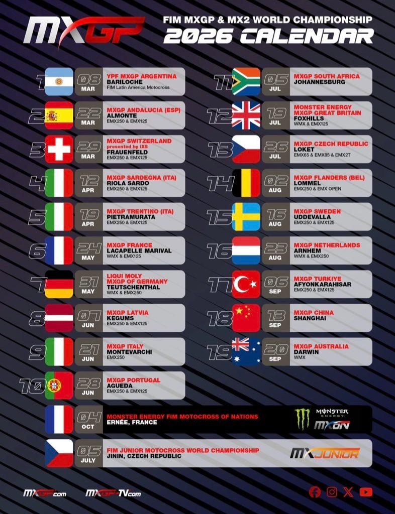 EL CALENDARIO DE MXGP 2026 YA ES DEFINITIVO