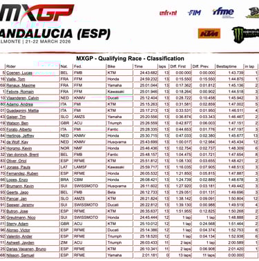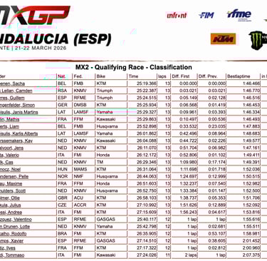 Sacha y Lucas Coenen no dan tregua en la arena de Almonte y se llevan las mangas de clasifIcación en MX2 Y MXGP, en un sábado en el que Guillem Farrés puso en alto a la afición española.